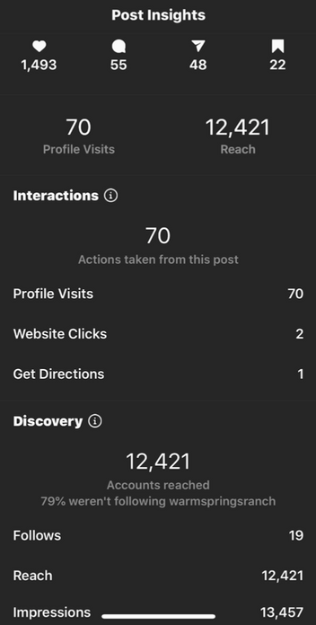 Managed 3 property Instagram accounts – @warmspringsranch, @homeofbud, @grantsfarm – and executed social media strategy: content creation, content scheduling, copywriting, community management